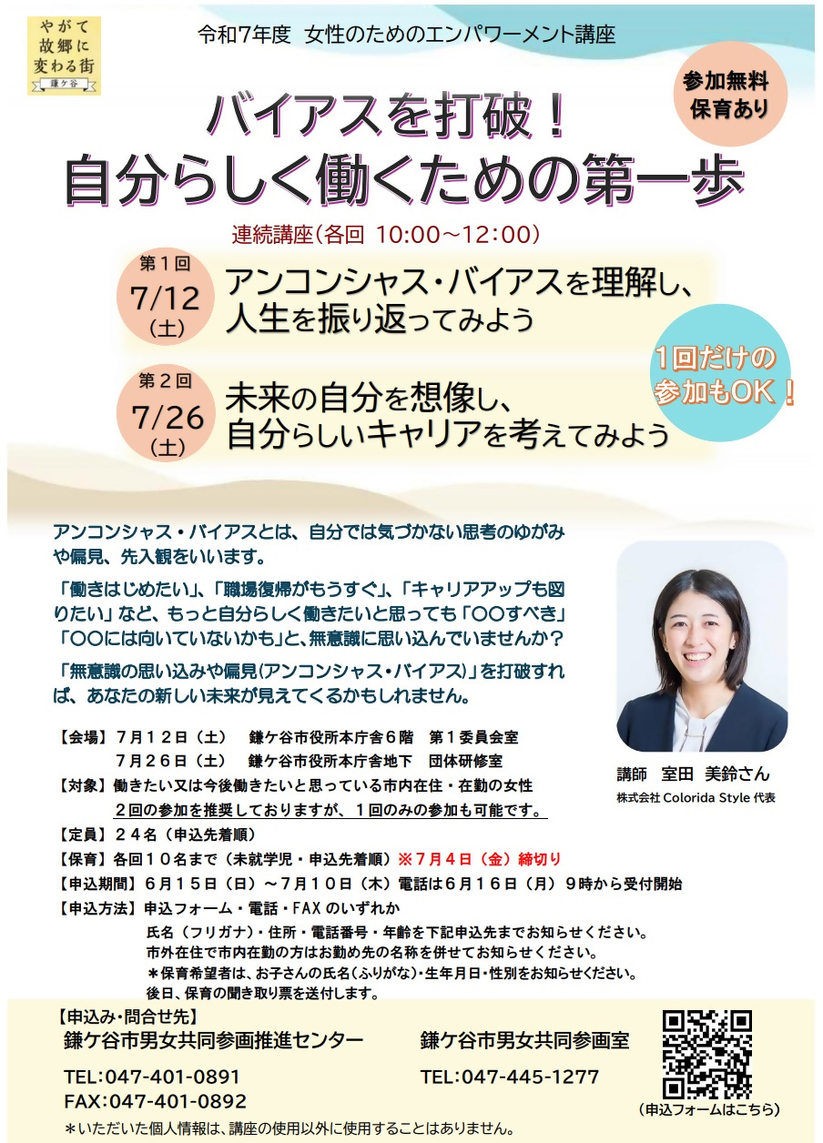 ◆講座名 女性のためのエンパワーメント講座「バイアスを打破!自分らしく働くための第一歩」