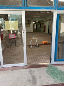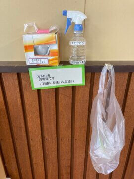 まずは、感染予防として入り口で消毒をします。
