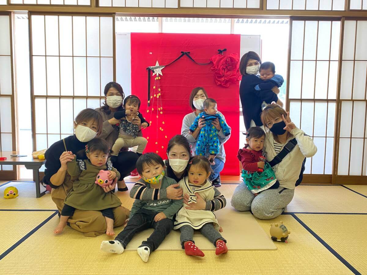 赤ちゃんやこどもたちが遊んでいるマットを囲んで、お母さん方で色々な情報交換したり、離乳食のちょっとした心配事を話してみたり・・・。