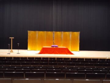 赤い生地に装飾したフォトスポットを作ってみました。