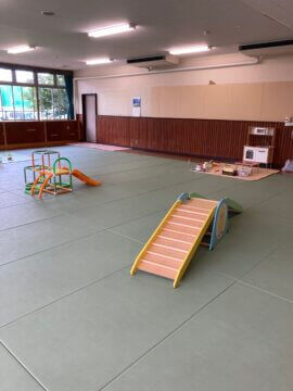 床も畳のように見えますがふかふかしていて、さらにマットでエリア分けしていて赤ちゃんも安心🐤