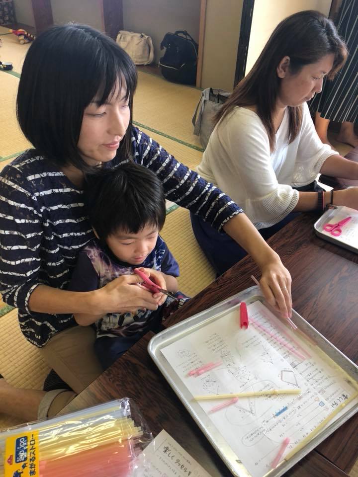 今回はストローを使用して家でも楽しめるように、作り方を教わりながらみんなで作りました。