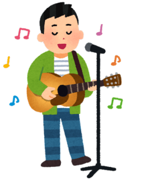 ギターを片手に楽しいユニークな曲と共に