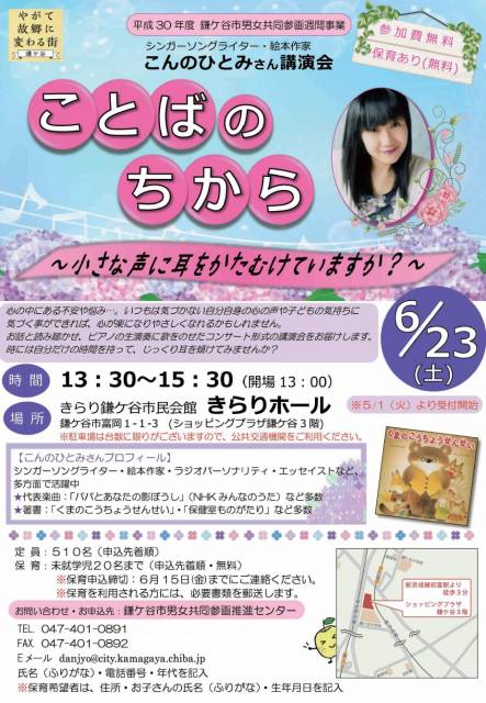 こんのひとみさんの講演会がきらりホールにて開催されます!!