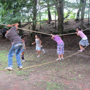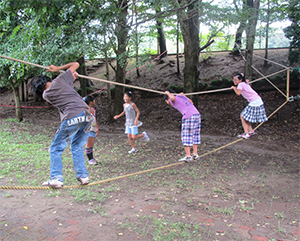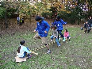ロープを使った綱渡りや昔懐かしい竹馬に挑戦したり、バンブーダンスを踊ってみたり!