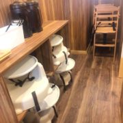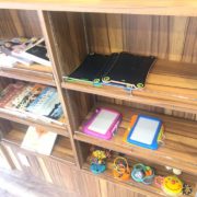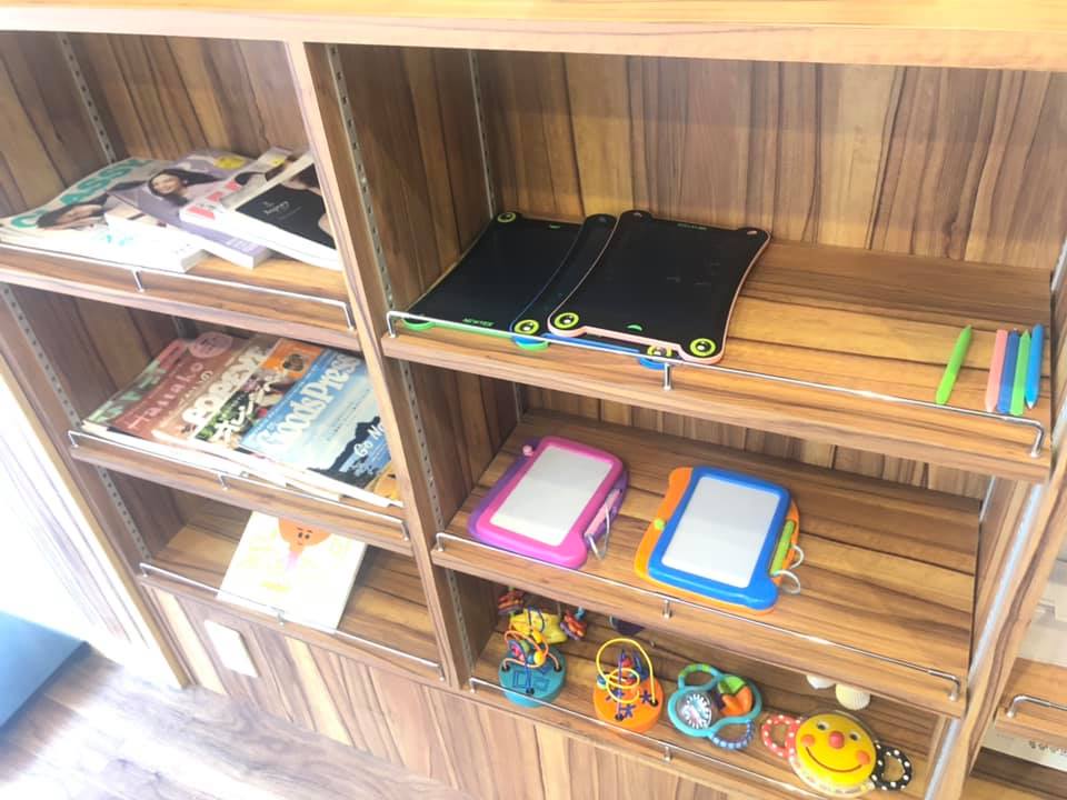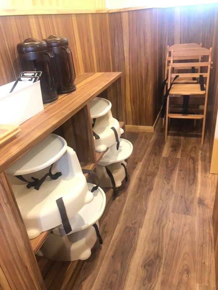 座敷はないけれど、こども用チェアやこども用食器、オモチャがあります。