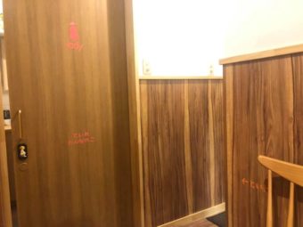 右側の『といれ→』の文字と、ひらがなで表記されている高さ。