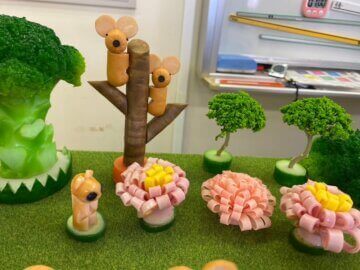 まわりの木々はブロッコリー🥦や、キュウリ🥒などの野菜で出来ています(*^_^*)