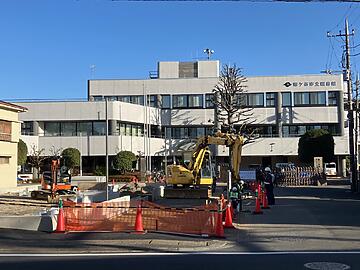 現在、まだ工事中の図書館前の駐車場ですが❢❢