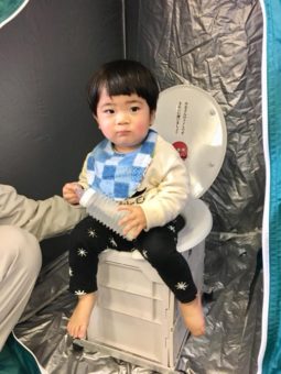 簡易トイレに子どもたちが座ったことで実際にこんな感じなのかーと体験できたのもよかったというご意見をいただけました( *´艸`)