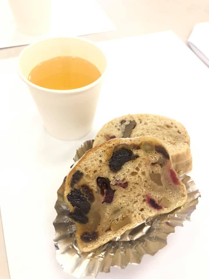 先生のお手製のシュトーレンとシナモンティーをいただきました。