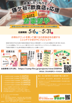 ①「ココチケかまがや」参加飲食店の中から応援したいお店を選んでいただきます。