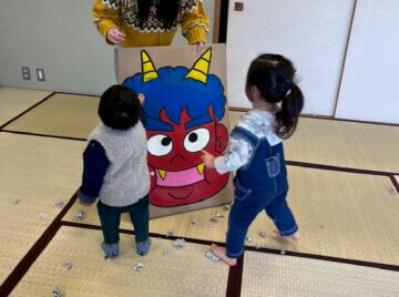 2月2日(木)のサークルの日に、豆まきをした様子を送っていただきましたー👹