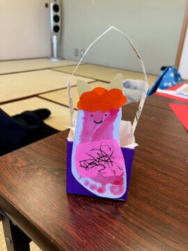 最初にとった足形は、鬼さんの豆入れに!!