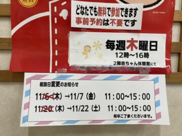 イオン鎌ヶ谷店「11月の子育て相談室」開室日時変更のお知らせです👶