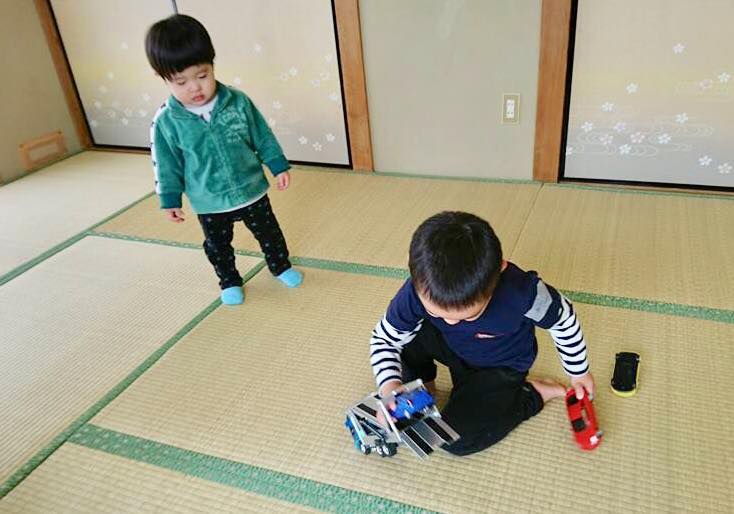 ねんねの赤ちゃんと元気いっぱいのお兄さんがいた今回でしたが、和室を半分にゆったりスペースと元気スペースで自然に分かれていました。
