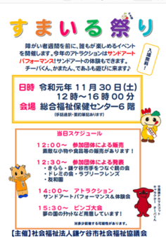 参加団体による発表や、ビンゴ大会、サンドアート体験など、誰もが楽しめるイベントが開催されます。