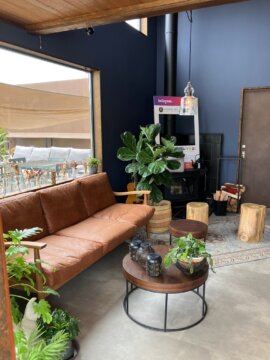 青空の下、おしゃれな空間で