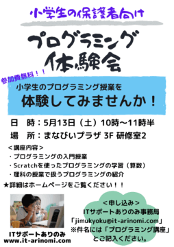 「小学生の保護者向け プログラミング体験会」