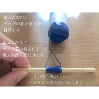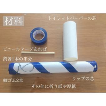 1.ラップ芯の先に2本つなげた輪ゴムを