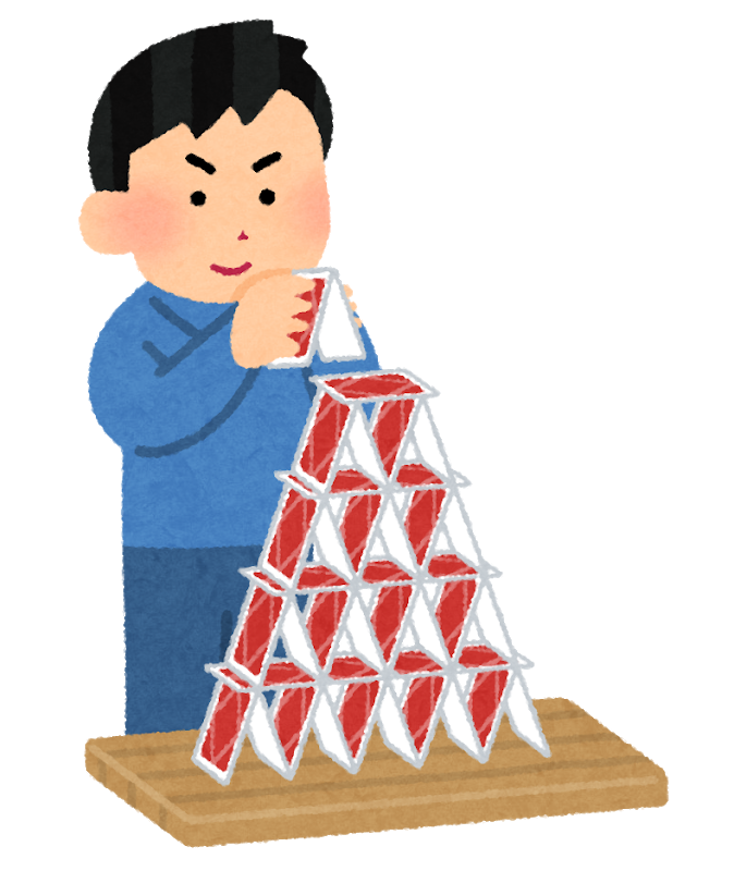 集中力が必要になるトランプタワー、最後まで作り上げることができると達成感が得られますよ。