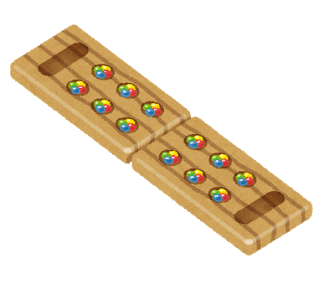 こちらの『マンカラ』はよく手作りされています。丸いものは石やおはじきで代用、あとは入れ物があればよいので、牛乳パックや空き缶、ゼリーのカップを使って家にあるもので簡単に作ることができるのですよ!