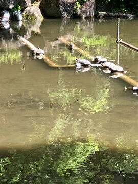 よーく見ると、子亀もお池を泳いでいて