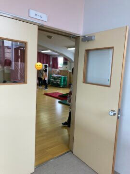 正門から保育園の中に入っていただくと正面に事務所があるので