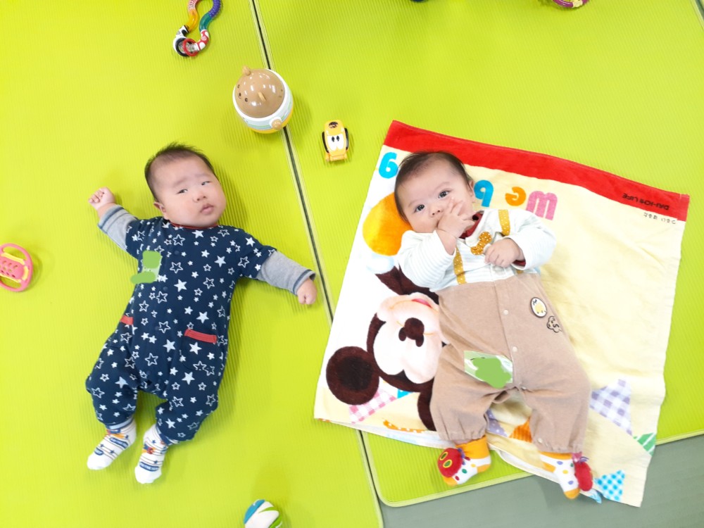お兄ちゃんの時はよく遊びに来ていたそうですが、弟くんはこの日が子育てサロンデビュー♡